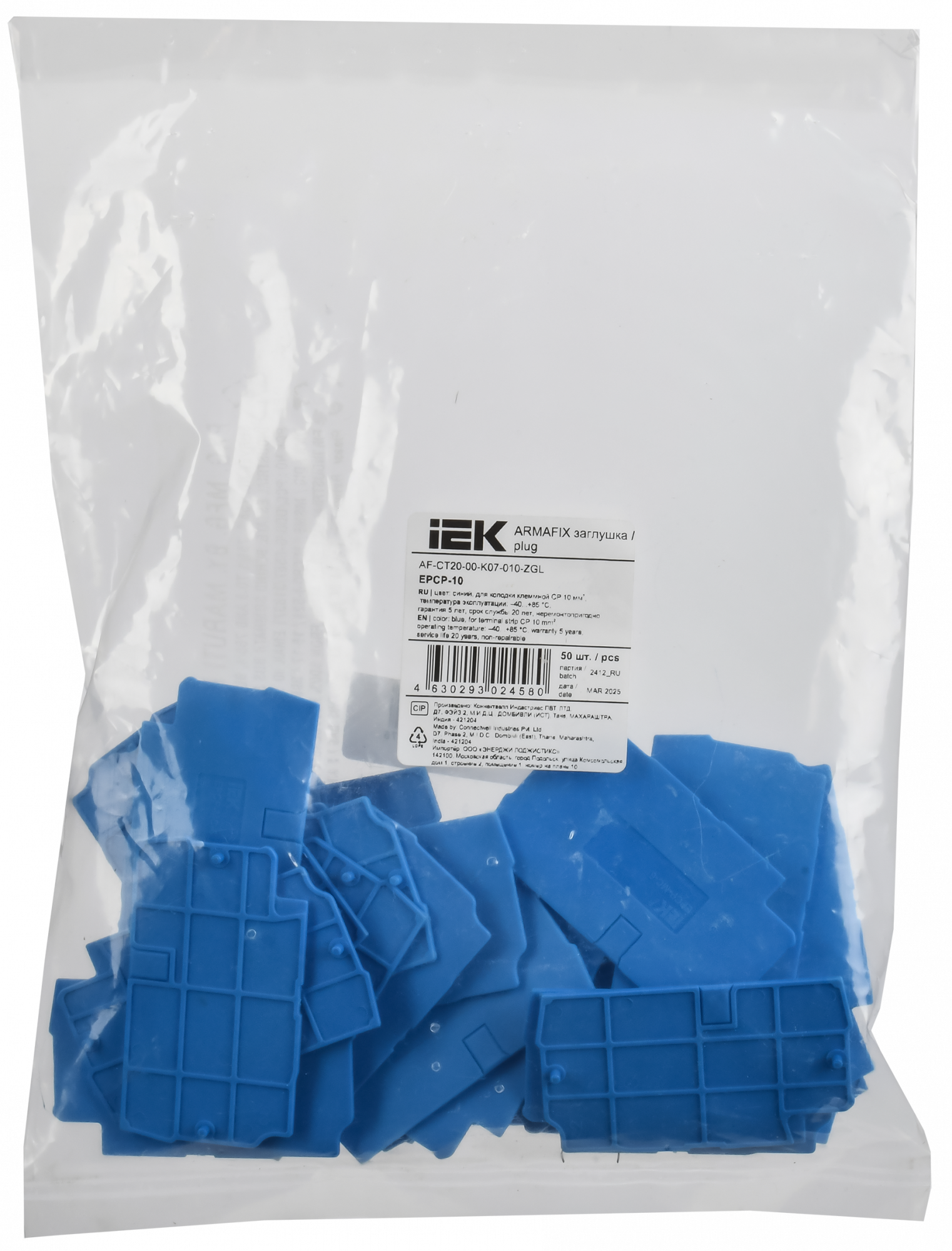 ARMAFIX Заглушка EPCX2.5-3 BU для колодки клеммной CP/CX2.5-3 синяя IEK AF-CT40-00-3-K07-002-ZGL