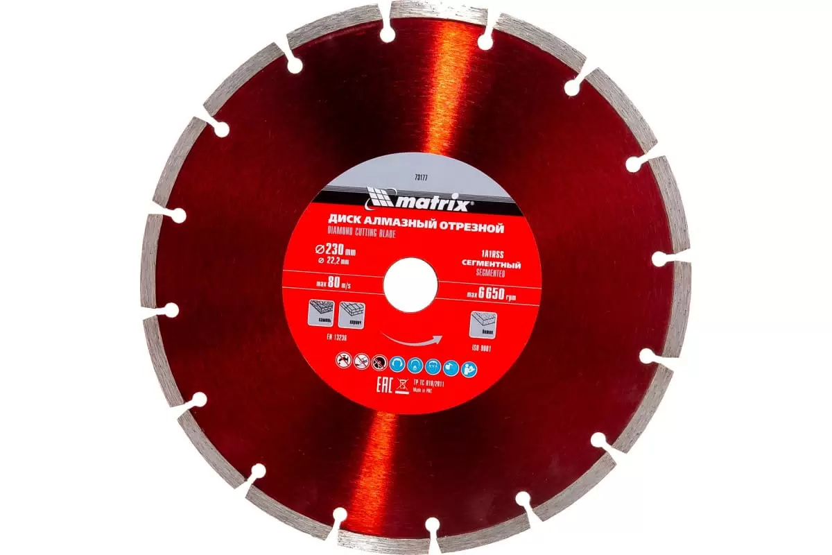 Диск алмазный отрезной сегментный, 230 х 22,2 мм, сухая резка Matrix 73177
