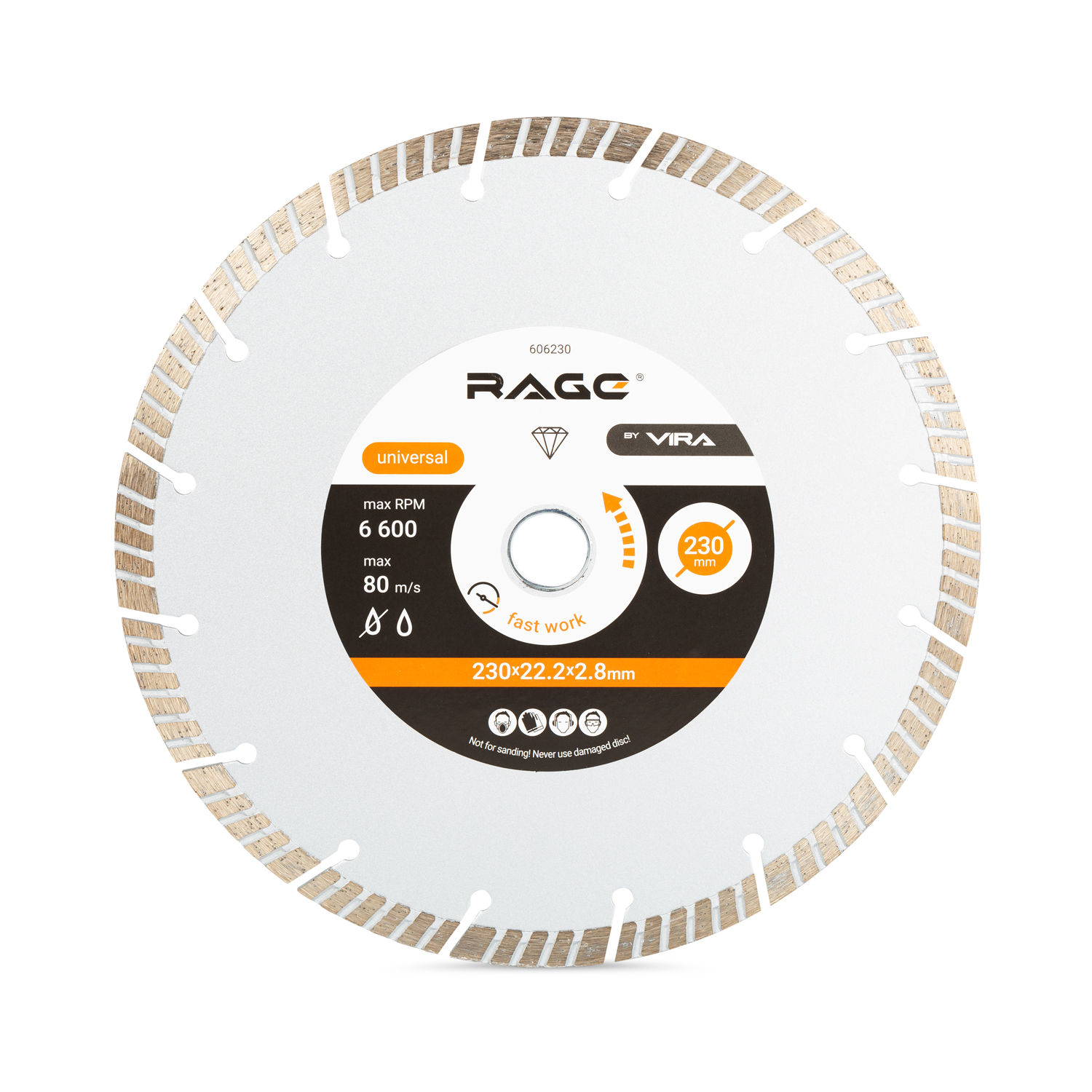Диск алмазный турбо сегментный 230 x 2.8 x 22.2 мм Rage 606230