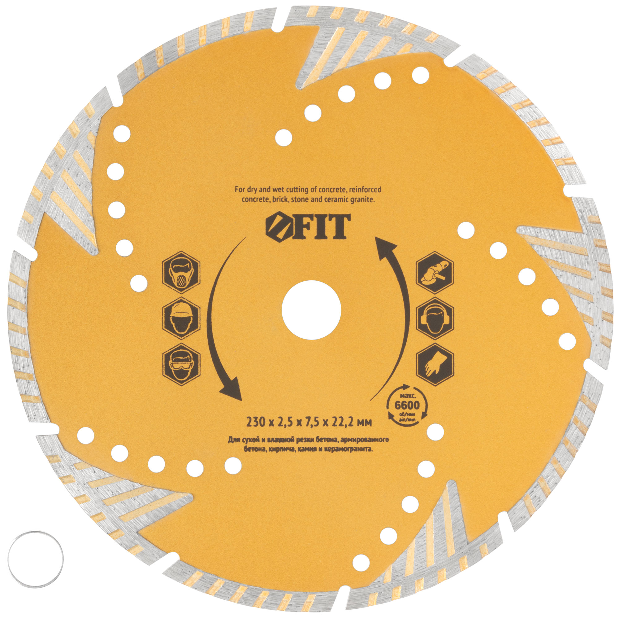 Диск отрезной алмазный универсальный с защитными секторами (сухая и влажная резка) 230х2.5х7.5х22.2 мм FIT 37549