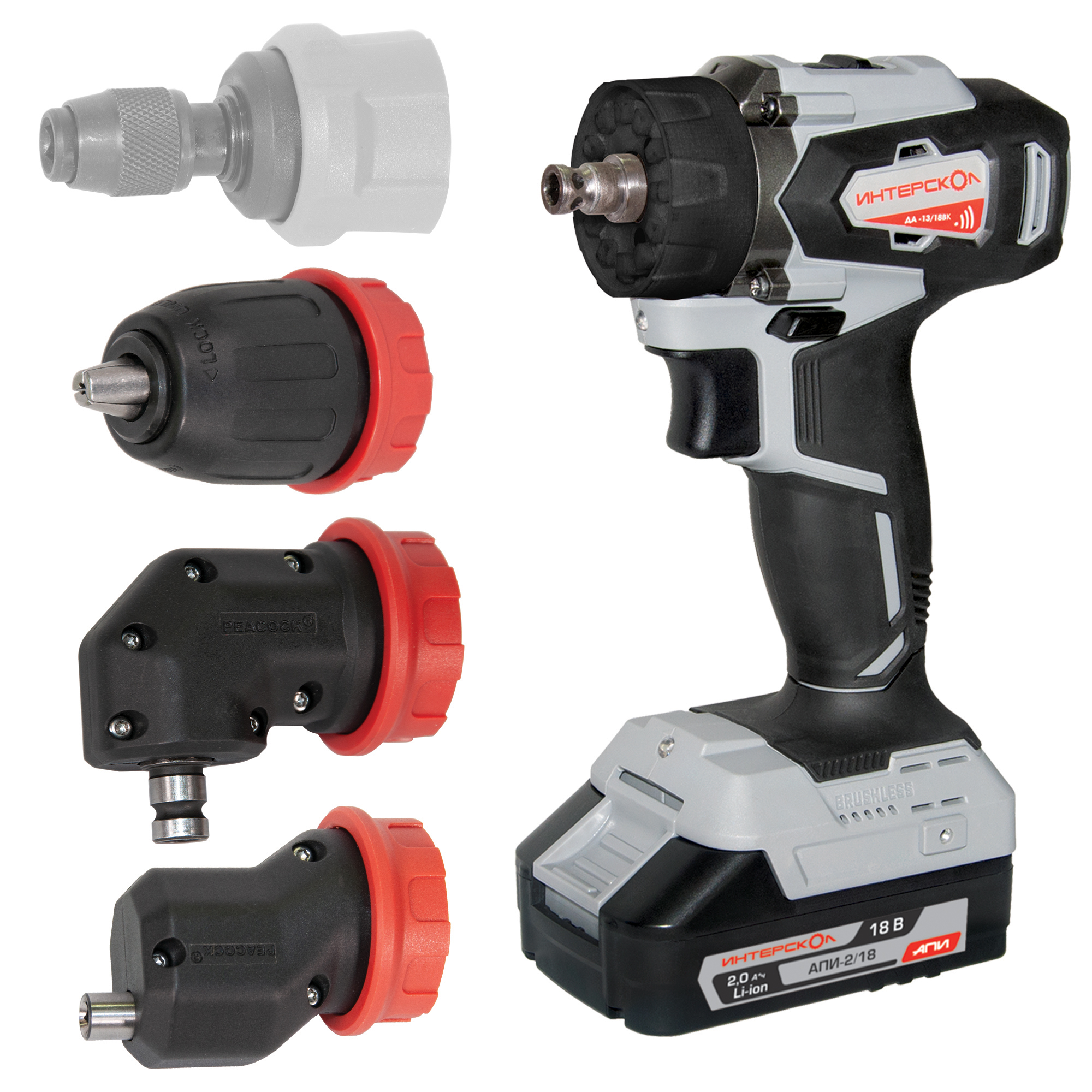 Дрель-шуруповерт бесщеточная аккумуляторная ДА-13/18ВК 45 комби АПИ (Li-ion, кейс, 2 аккум., 2Ач, 3 насадки), Интерскол 575.2.2.78