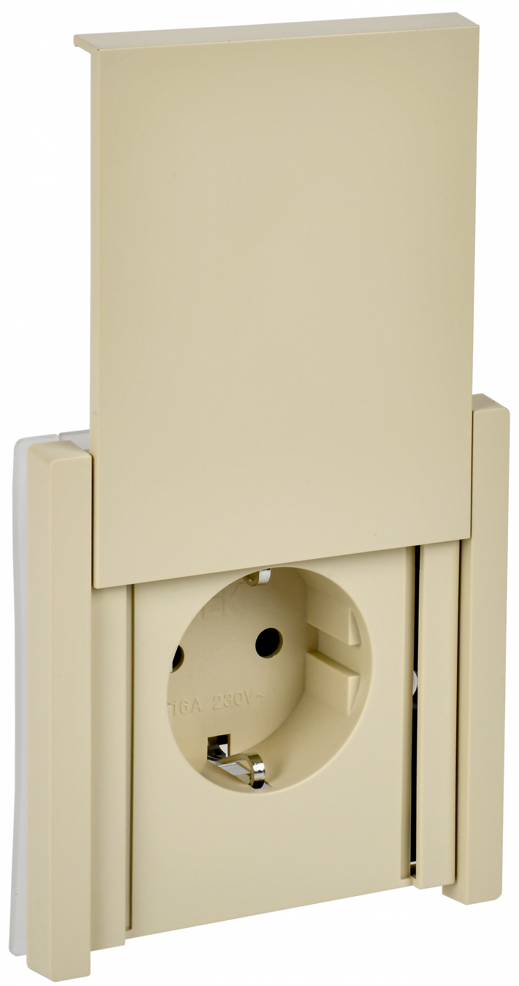 FORTE&PIANO Розетка 1-местная с заземлением с защитными шторками и крышкой безвинтовое крепление 16А IP44 FP419 ваниль IEK FP-R16-16-1-44-K10
