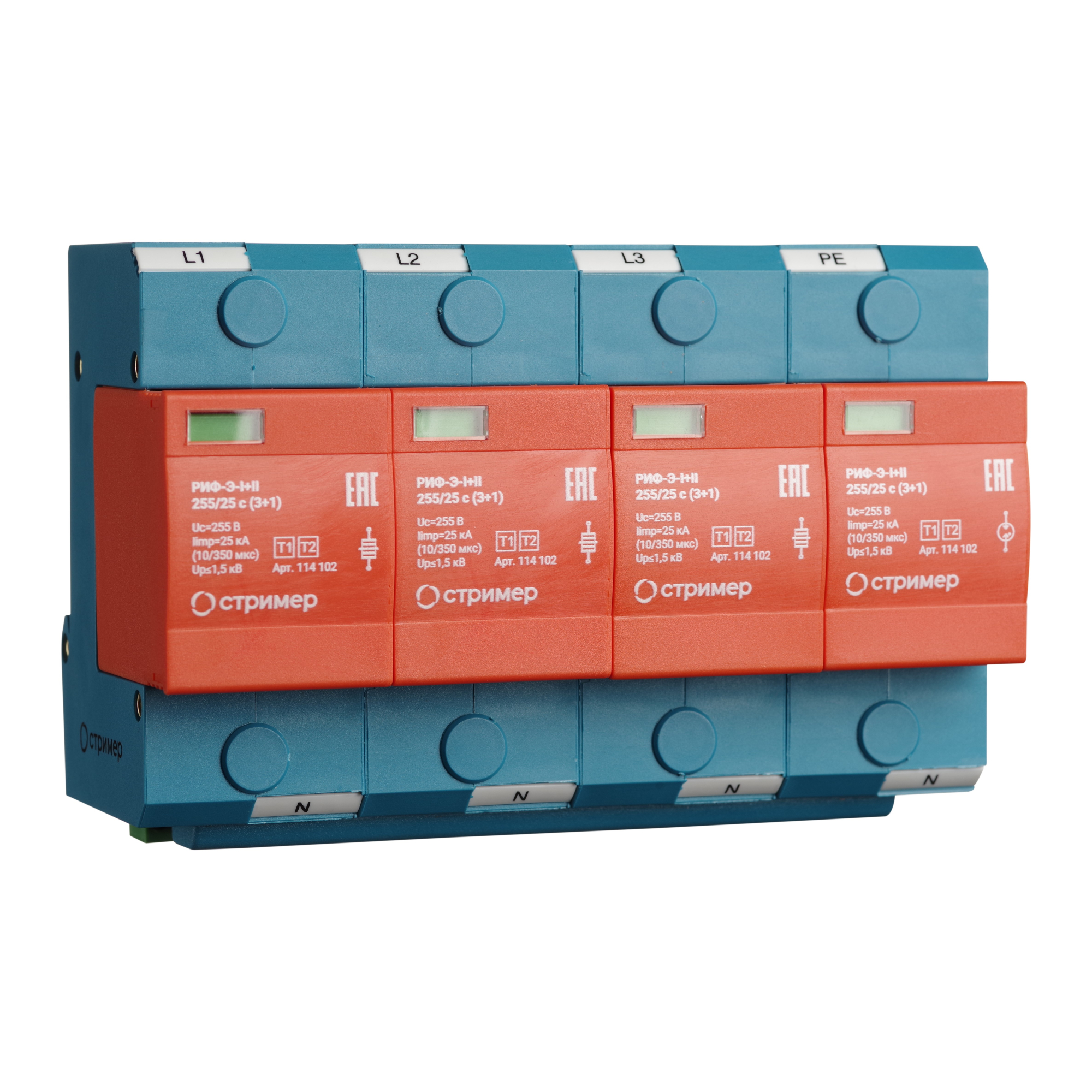Устройство защиты от импульсных перенапряжений РИФ-Э-I+II 255/25 с (3+1) СТРИМЕР 114102