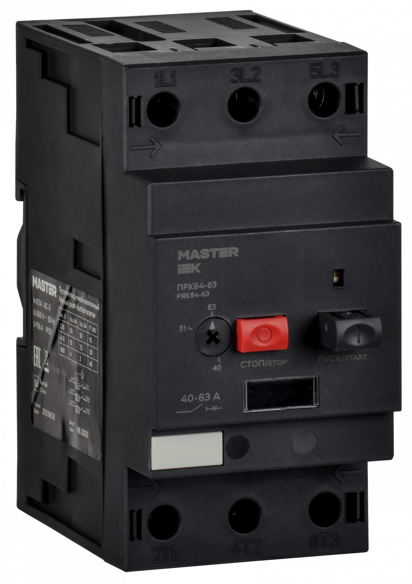 Выключатель защиты двигателя ПРК64-63 In=64A Ir=40-63A Ue 660В IEK DMS22-63